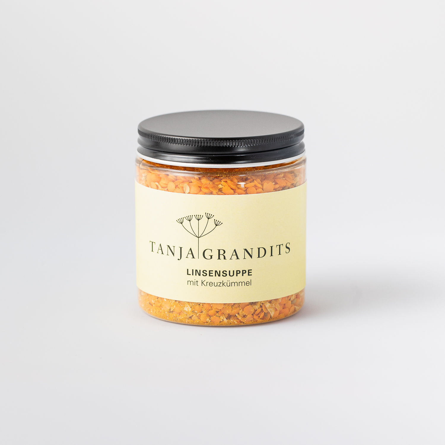 Ingredients: Lentils 73.1%, Onions, Vegetable Broth (Sea Salt, Yeast Extract, [Dried Vegetables: Pumpkin, Carrot, Parsnip, Tomato], Table Salt, Sugar, Parsley, Olive Oil, [Spices: Mace, Bay Leaf, White Pepper, Thyme, Rosemary]), Carrots, Cumin 2%, Salt, Turmeric, Coriander, Garlic, Ginger, Chili