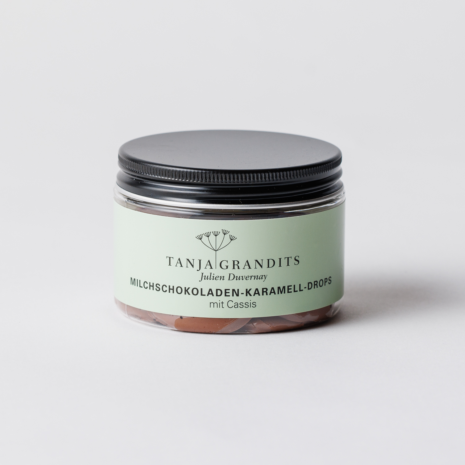 Zutaten: Milchschokolade 56.8% (Kakao: 46% mindestens, Zucker, Kakaobutter, Vollmilchpulver, Kakaobohnen), Karamell 39.5% (Rahm, Zucker, Butter, Glukose, Cassis Schwarztee 1% (Schwarzer Tee, Cassisblätter, natürliches Cassisaroma), Limettenblätter, Hibiskuspulver, natürliches Himbeeraroma, Fleur de Sel